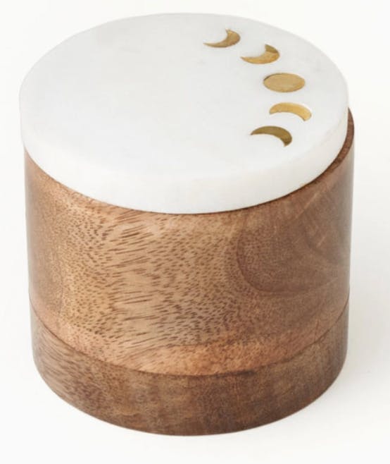 Faire | Indukala Keepsake Box - Marble, Mango Wood, Brass, Round